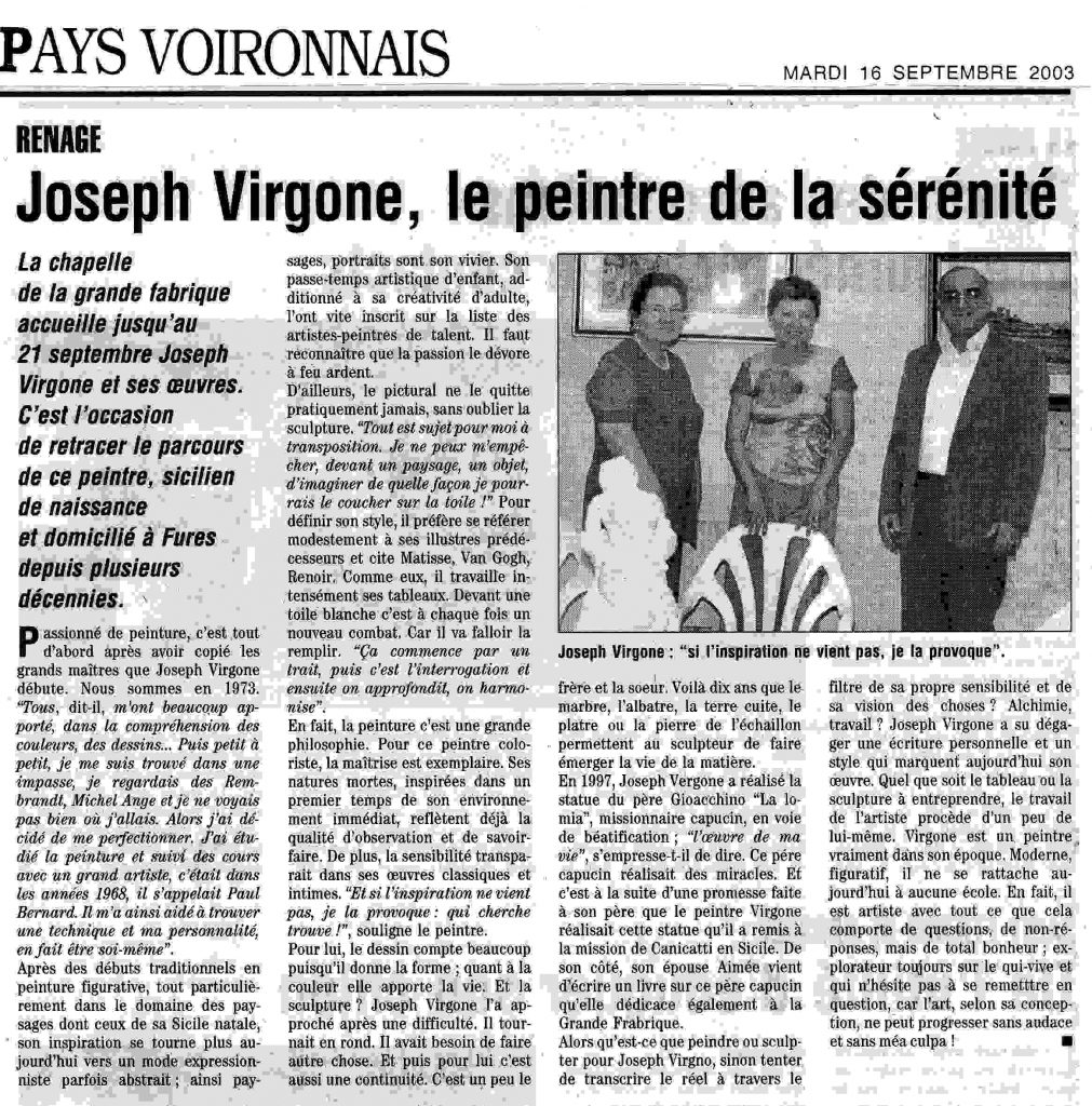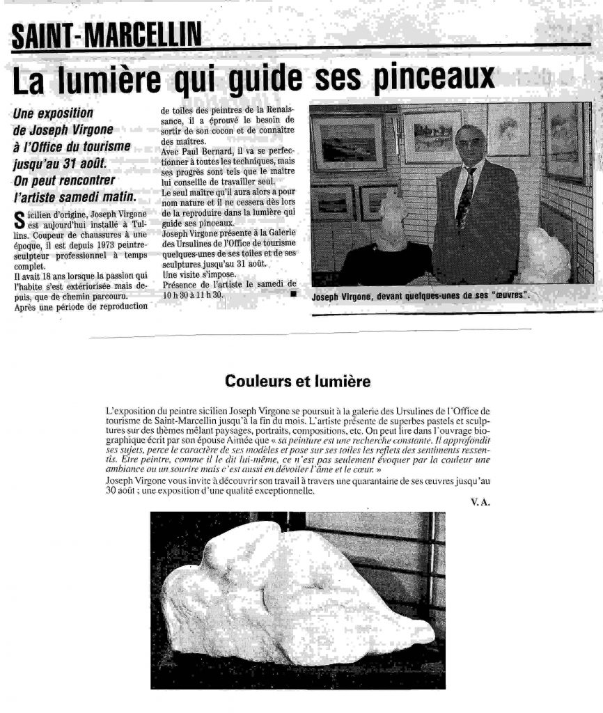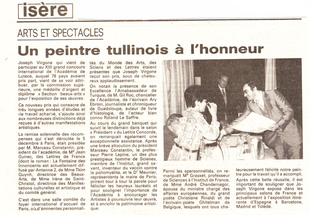 Au cours de sa longue carrière de plus de 60 ans, Joseph VIRGONE a fait l’objet de nombreux articles de presse aussi bien locales qu’internationales. En voici quelques extraits.